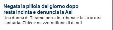 Premessa: questo non è un post sulla diatriba pillola sì pillola no; i tag aborto-omicidio, ru486-omicidio, obiezione sì-obiezione no (già se ne è parlato, sapete come la penso) non gli appartengono, quindi.